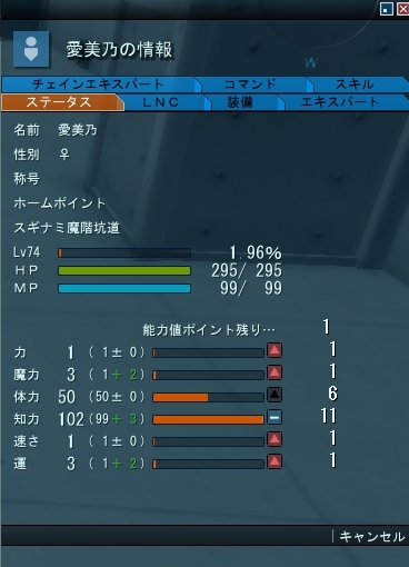 愛美乃がLv74になってやっと知力カンスト(