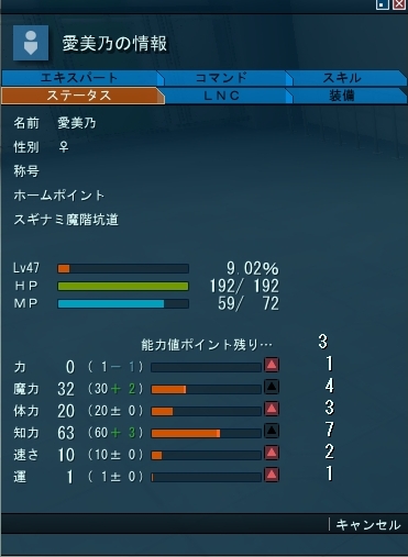 ②Lvとステータス・エキスパは?なんでそれにしたの?